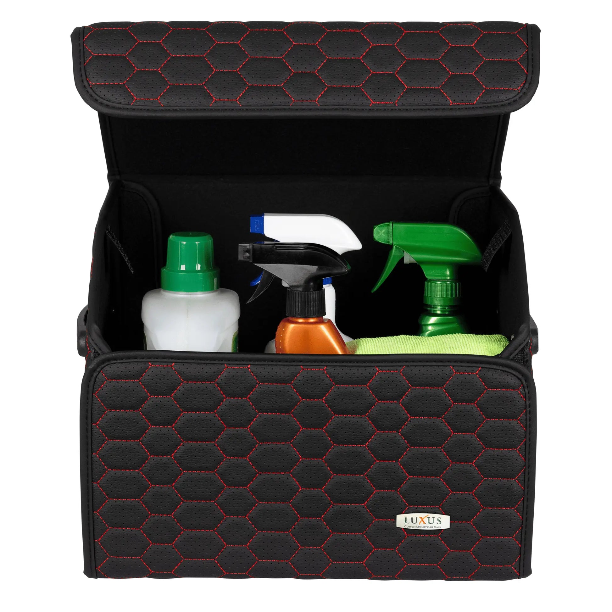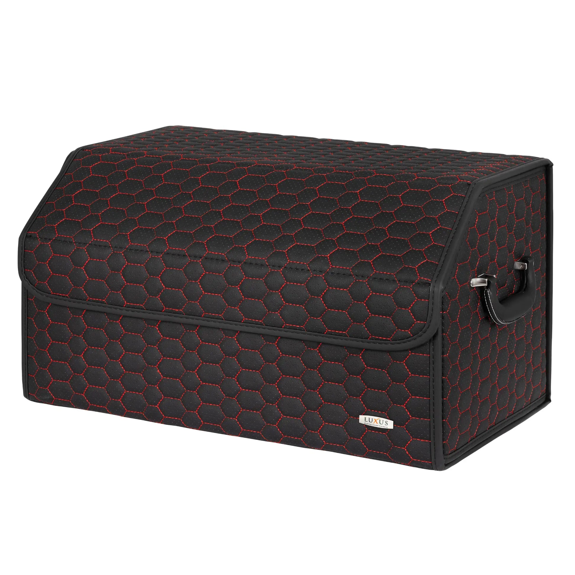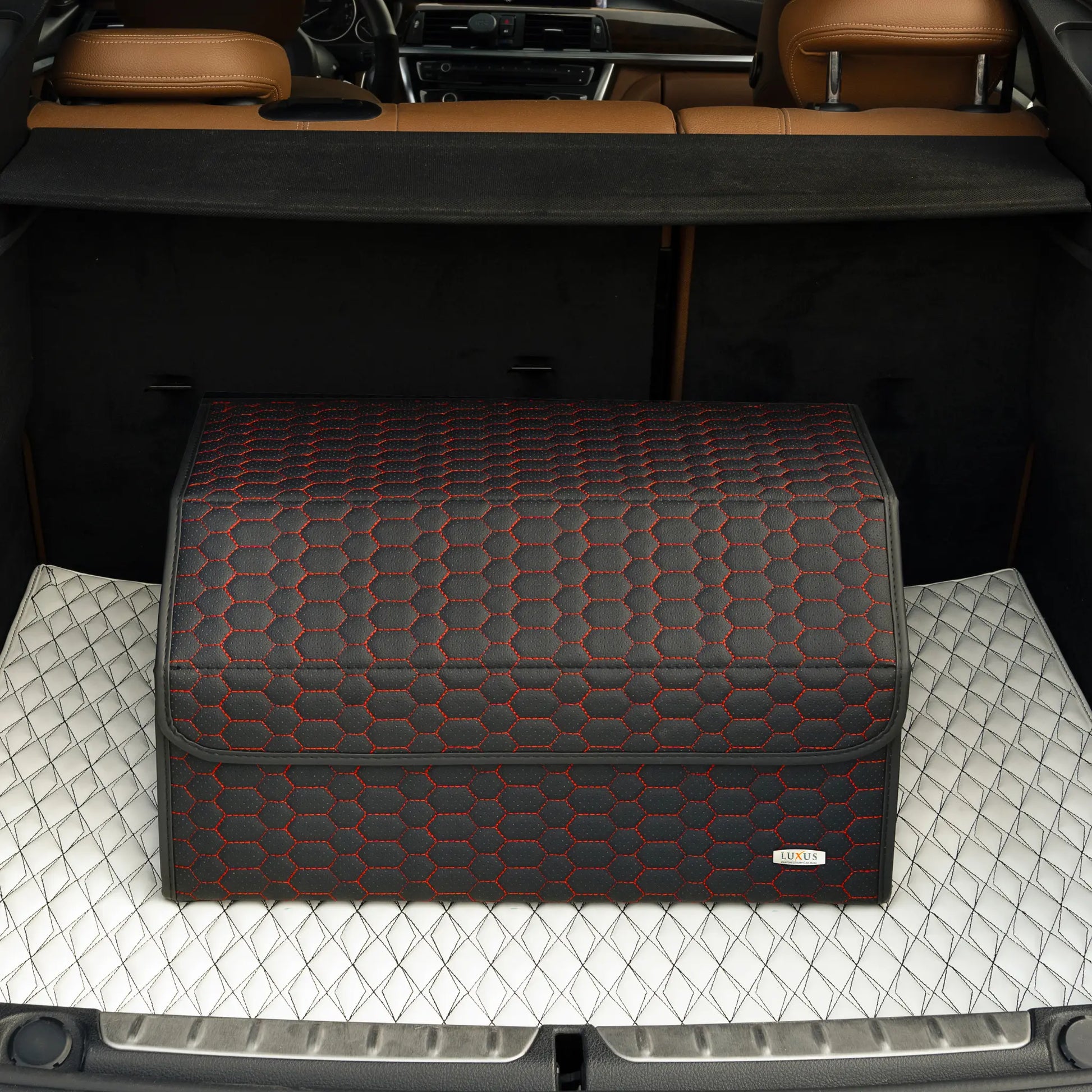 Boite de Rangement Voiture | Motif Nid d'Abeille | Noir & Surpiqûres Rouges