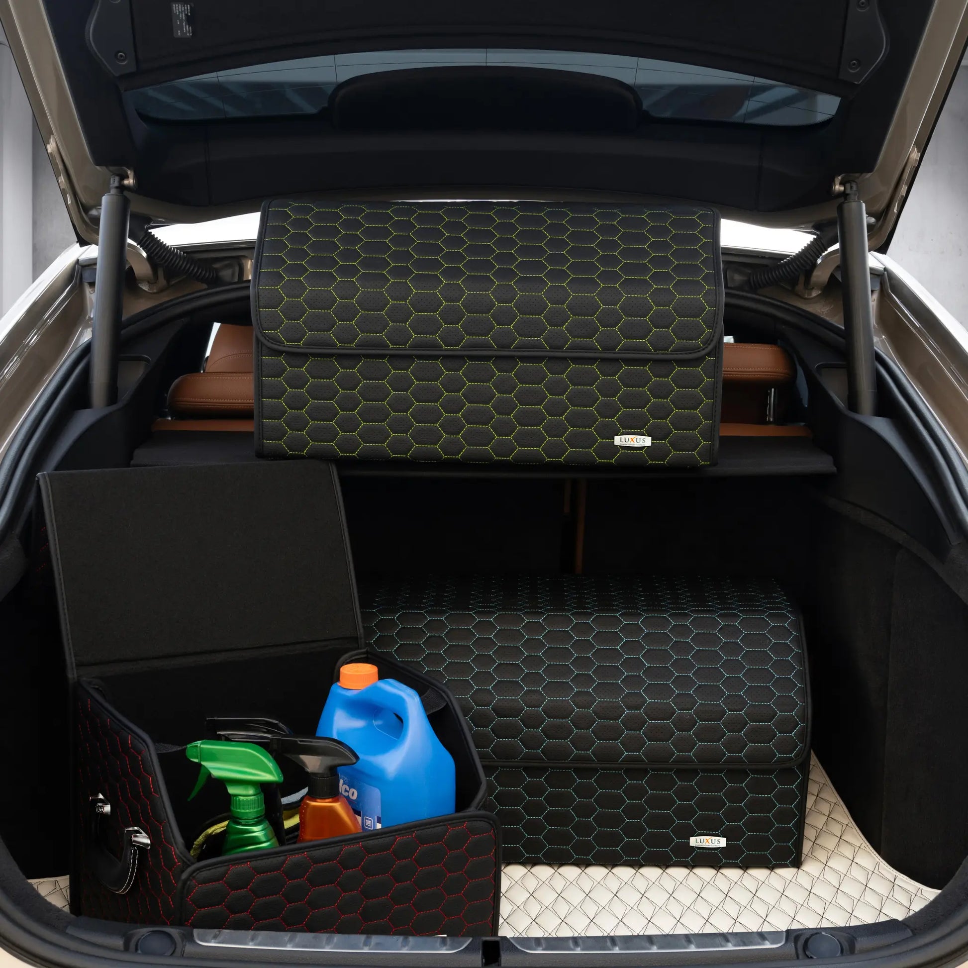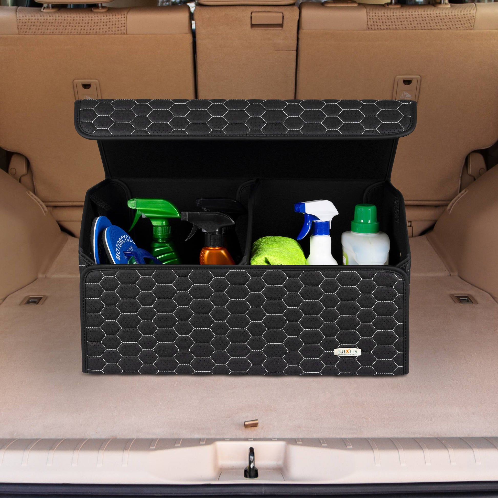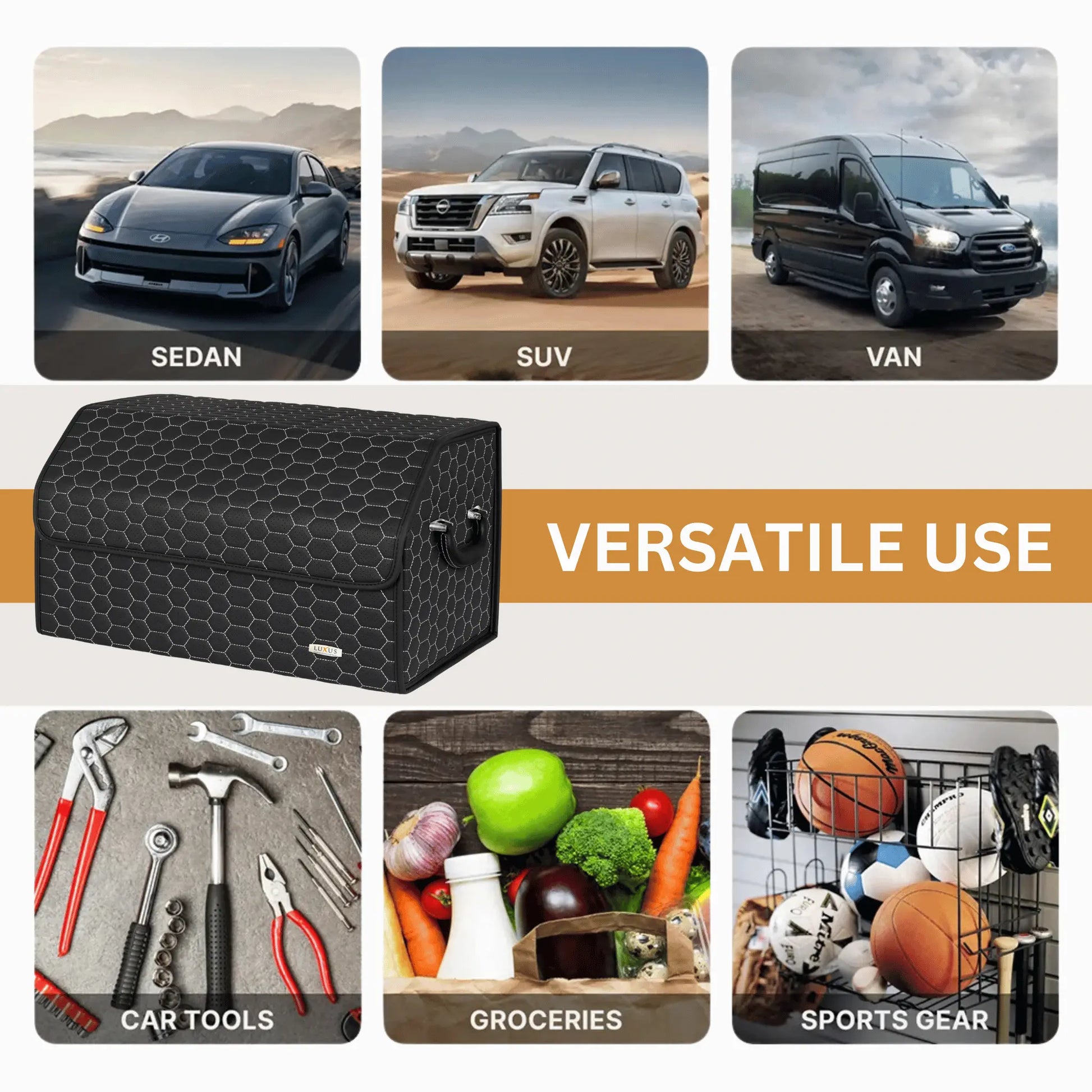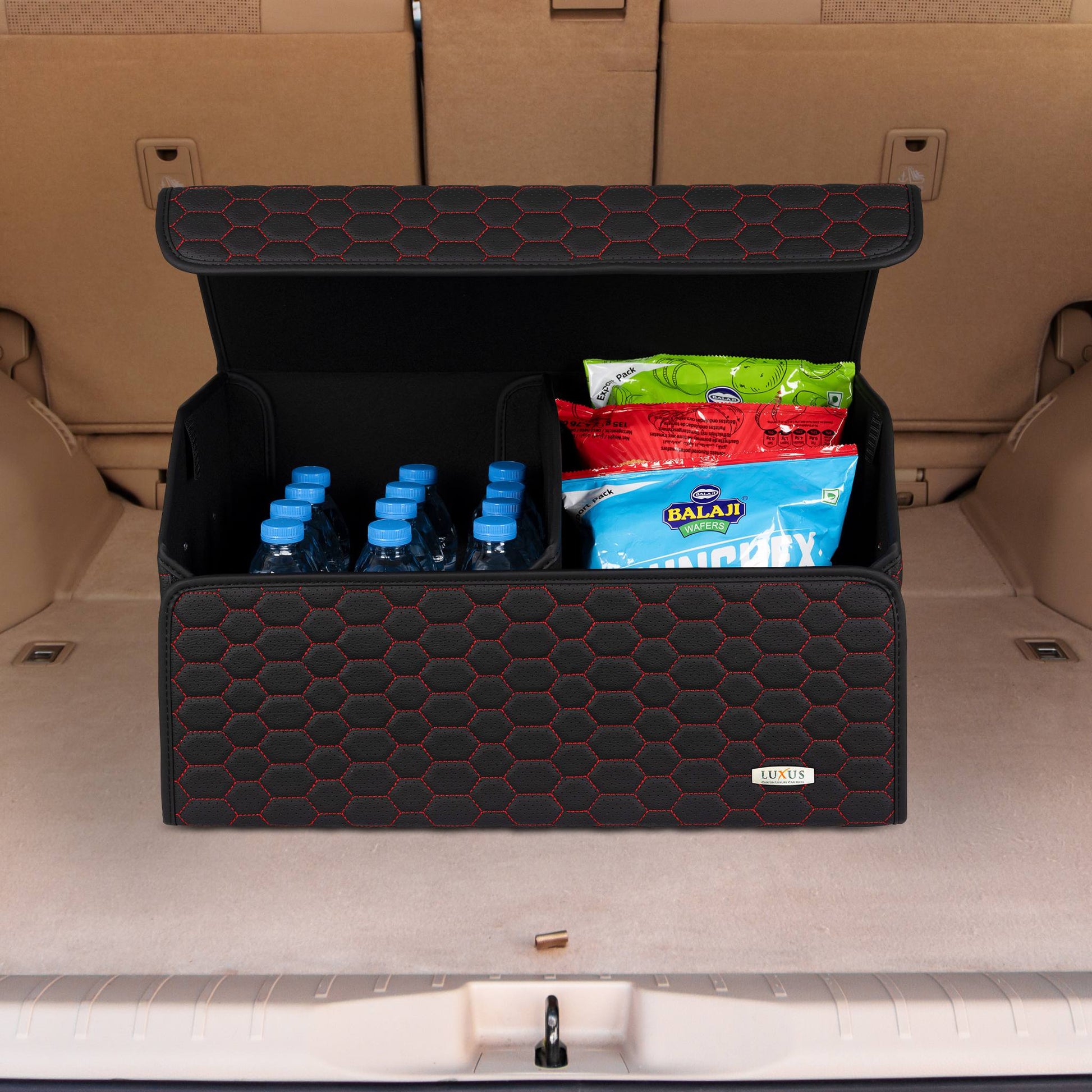 Boite de Rangement Voiture | Motif Nid d'Abeille | Noir & Surpiqûres Rouges