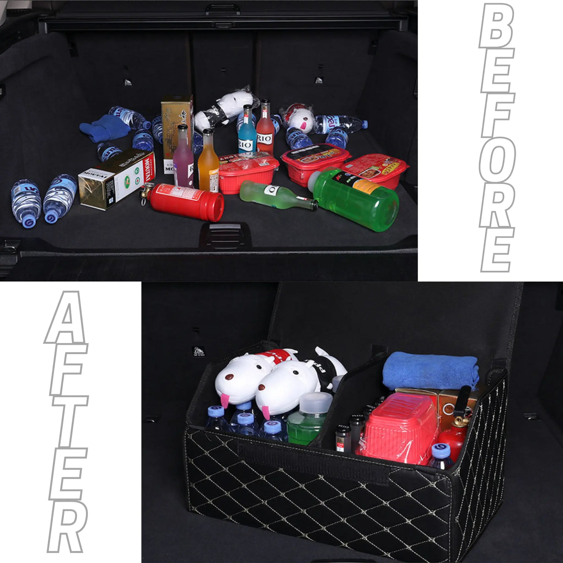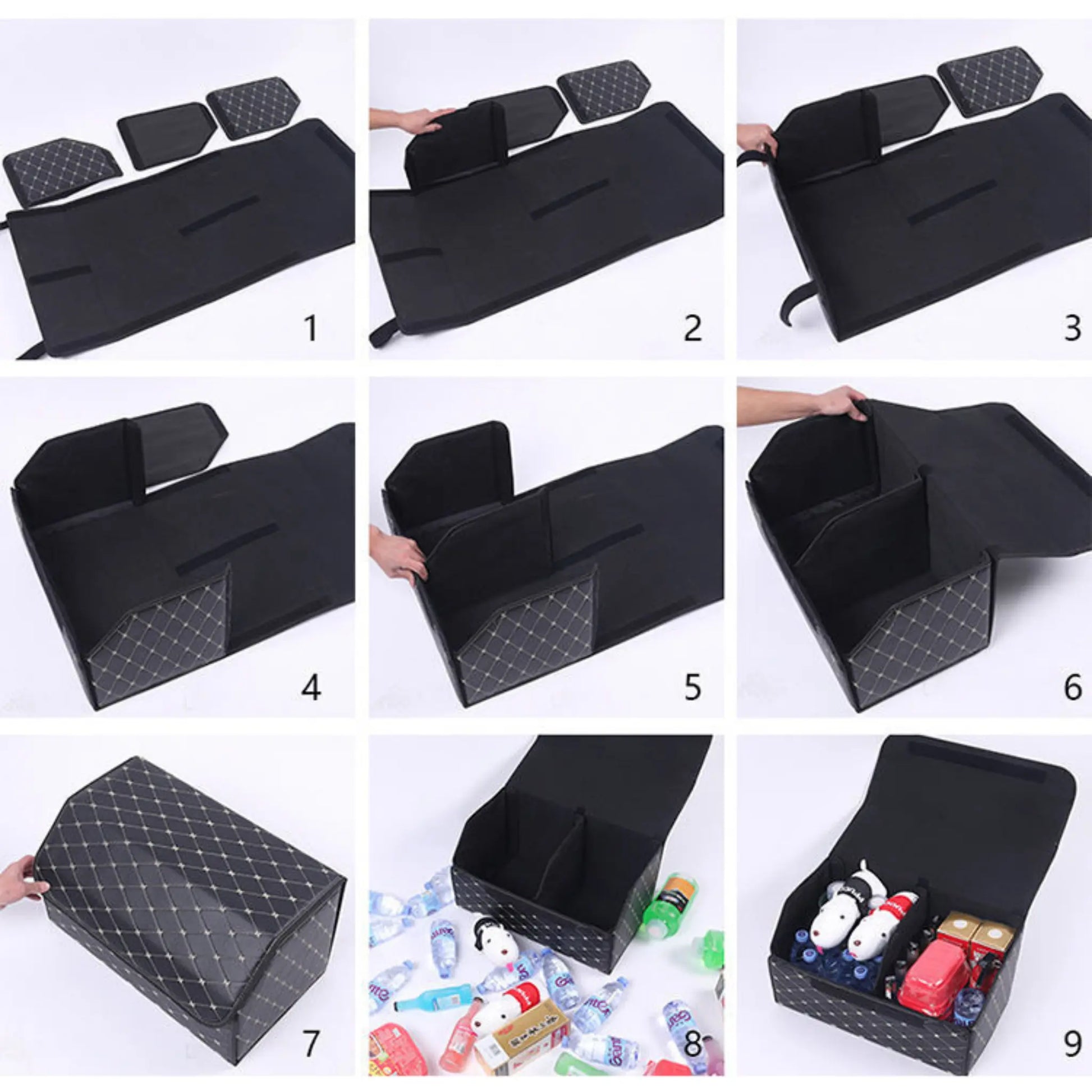 Boite de Rangement Voiture | Motif Losange | Noir & Surpiqûres Beiges