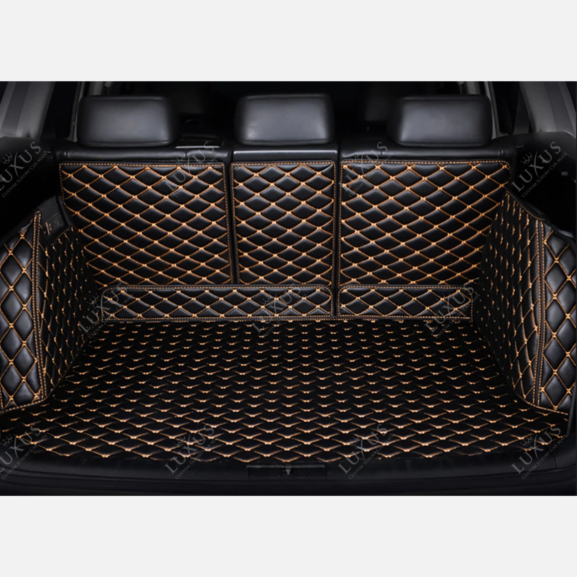 Tapis de coffre 3D intégral sur mesure premium Luxus – motif losange noir avec surpiqûres orange