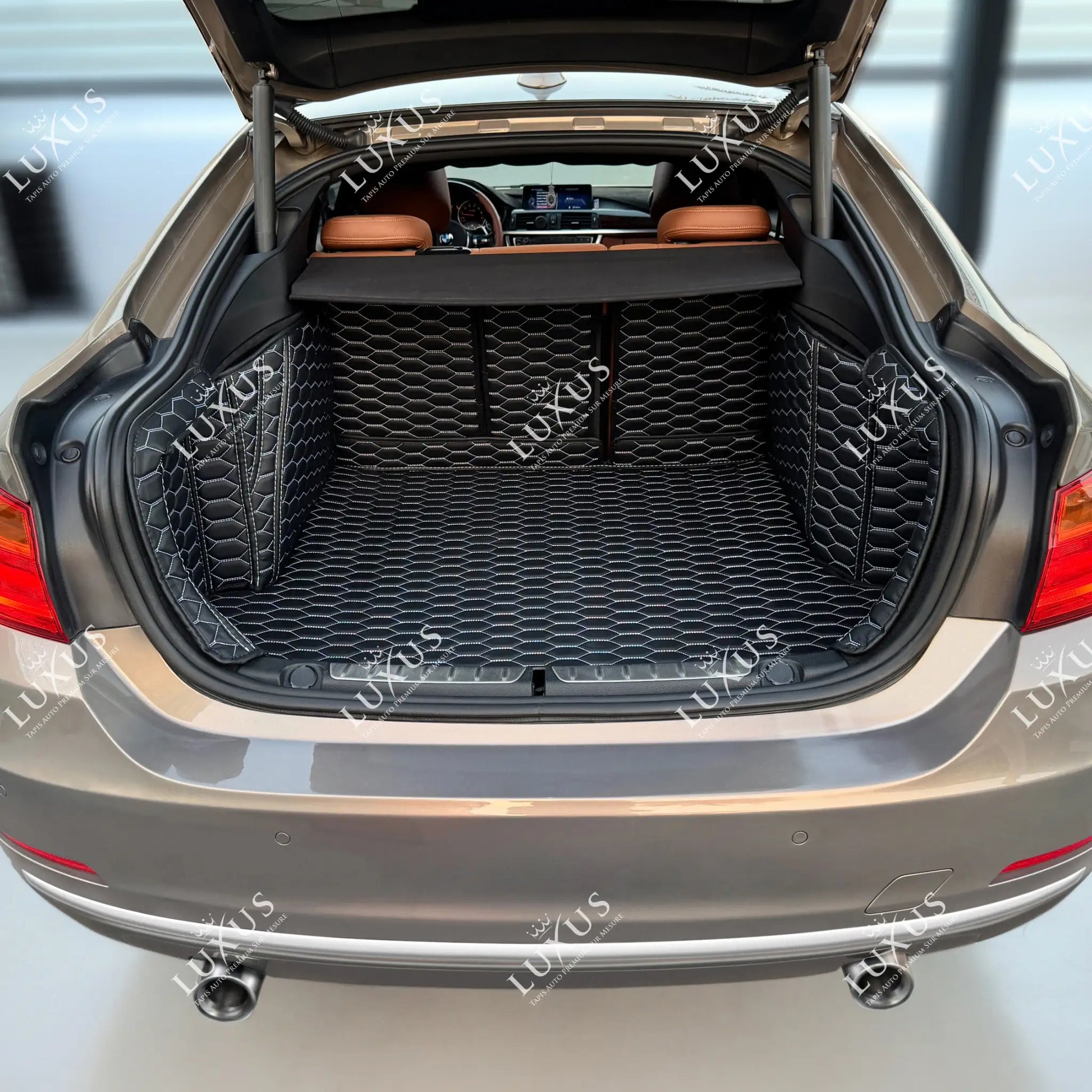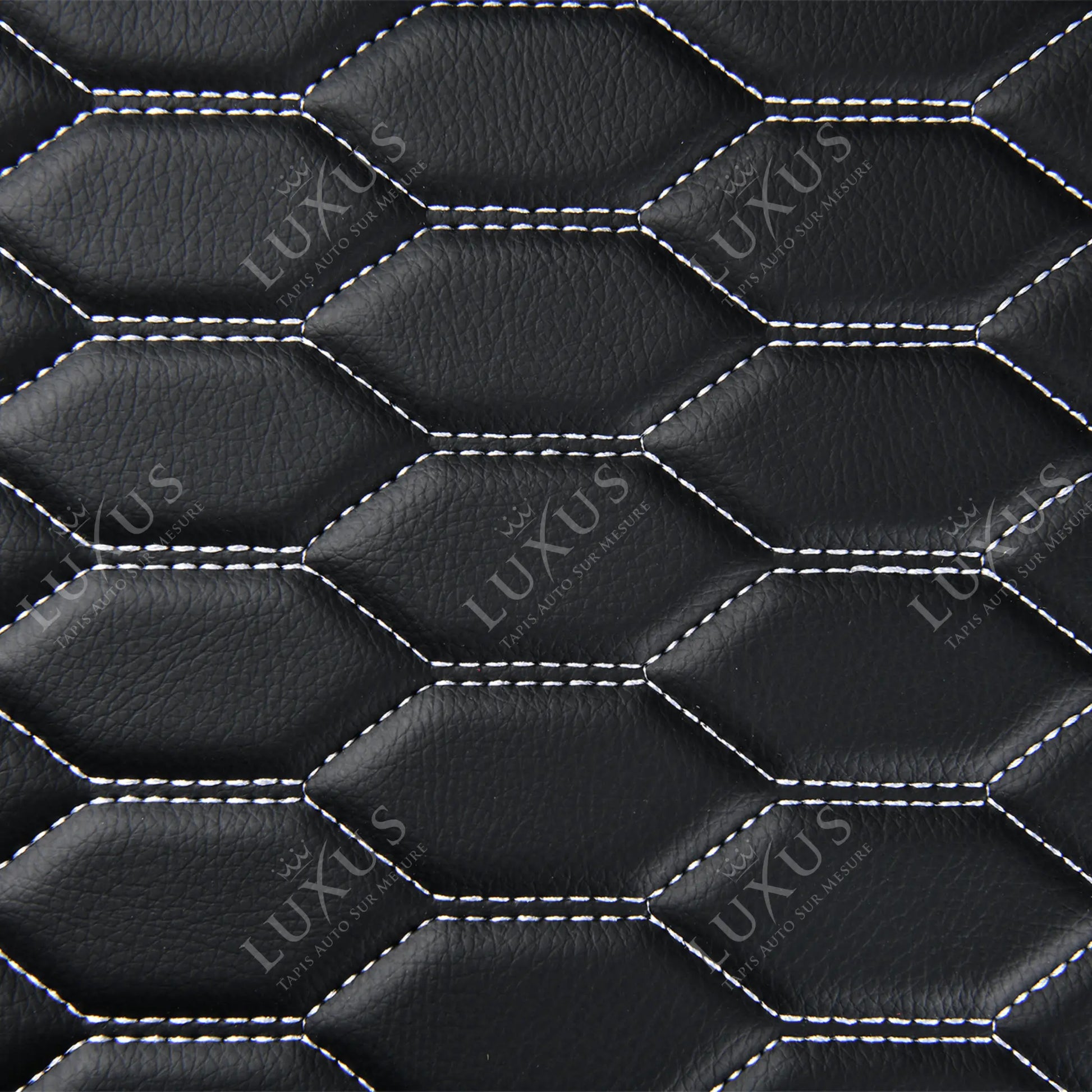 Tapis de Coffre 3D Intégral sur Mesure Premium Luxus – Motif Nid d’Abeille Noir avec Surpiqûres Blanches