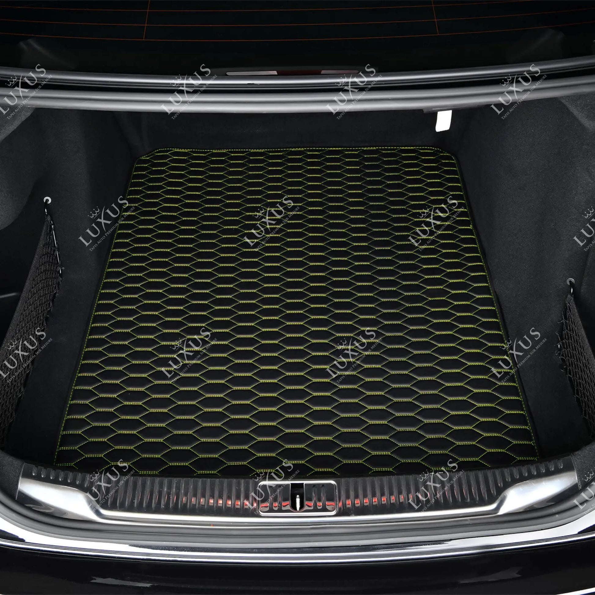 Tapis de Coffre sur Mesure Premium Luxus – Motif Nid d’Abeille Noir avec Surpiqûres Vertes