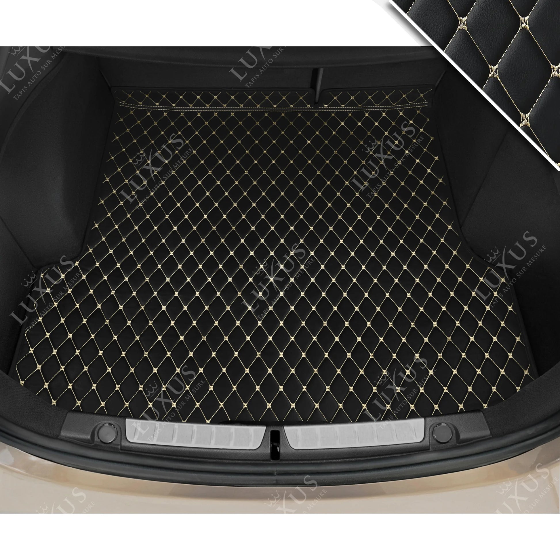 Tapis de Coffre sur Mesure Premium Luxus – Motif Losange Noir avec Surpiqûres Beiges