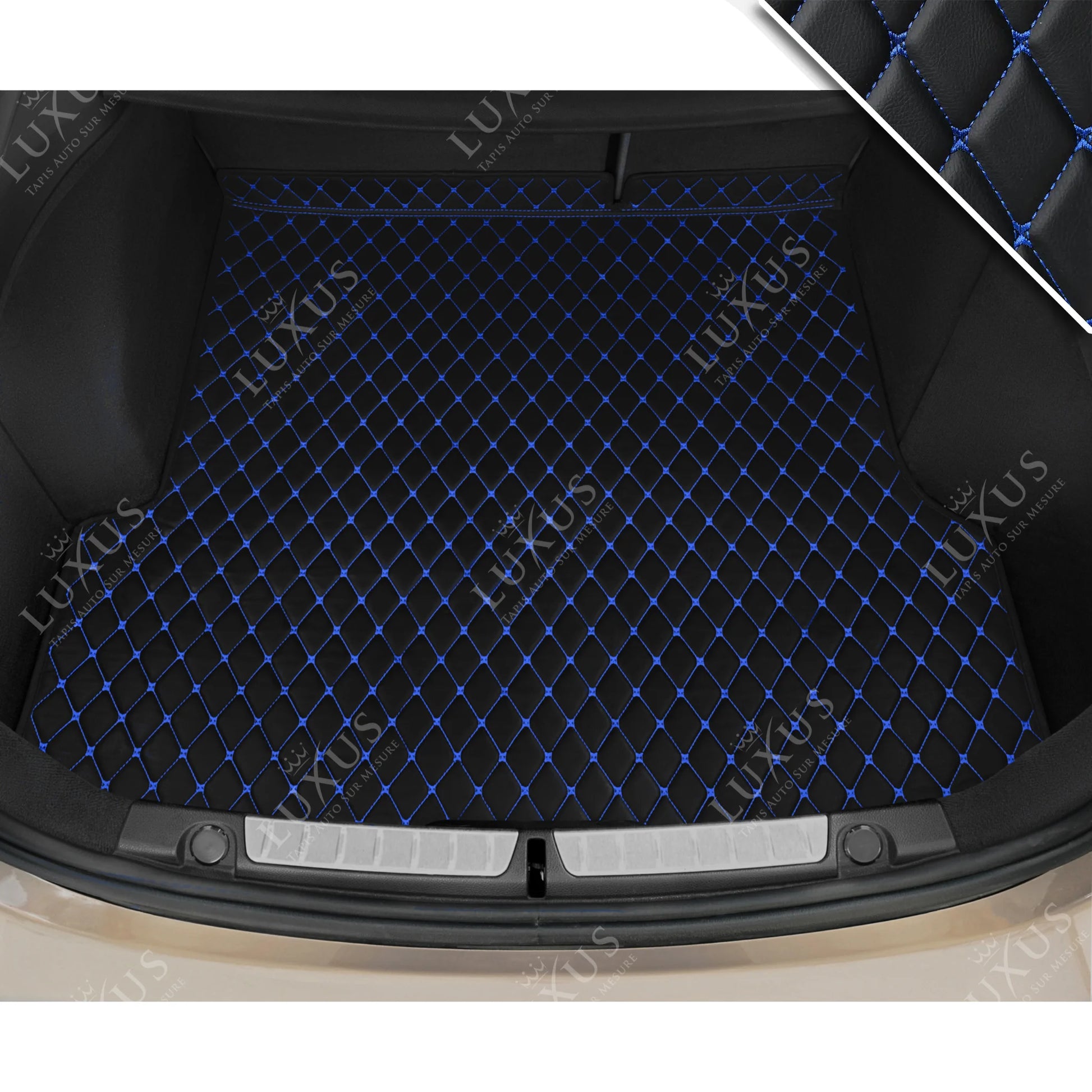 Tapis de Coffre sur Mesure Premium Luxus – Motif Losange Noir avec Surpiqûres Bleues