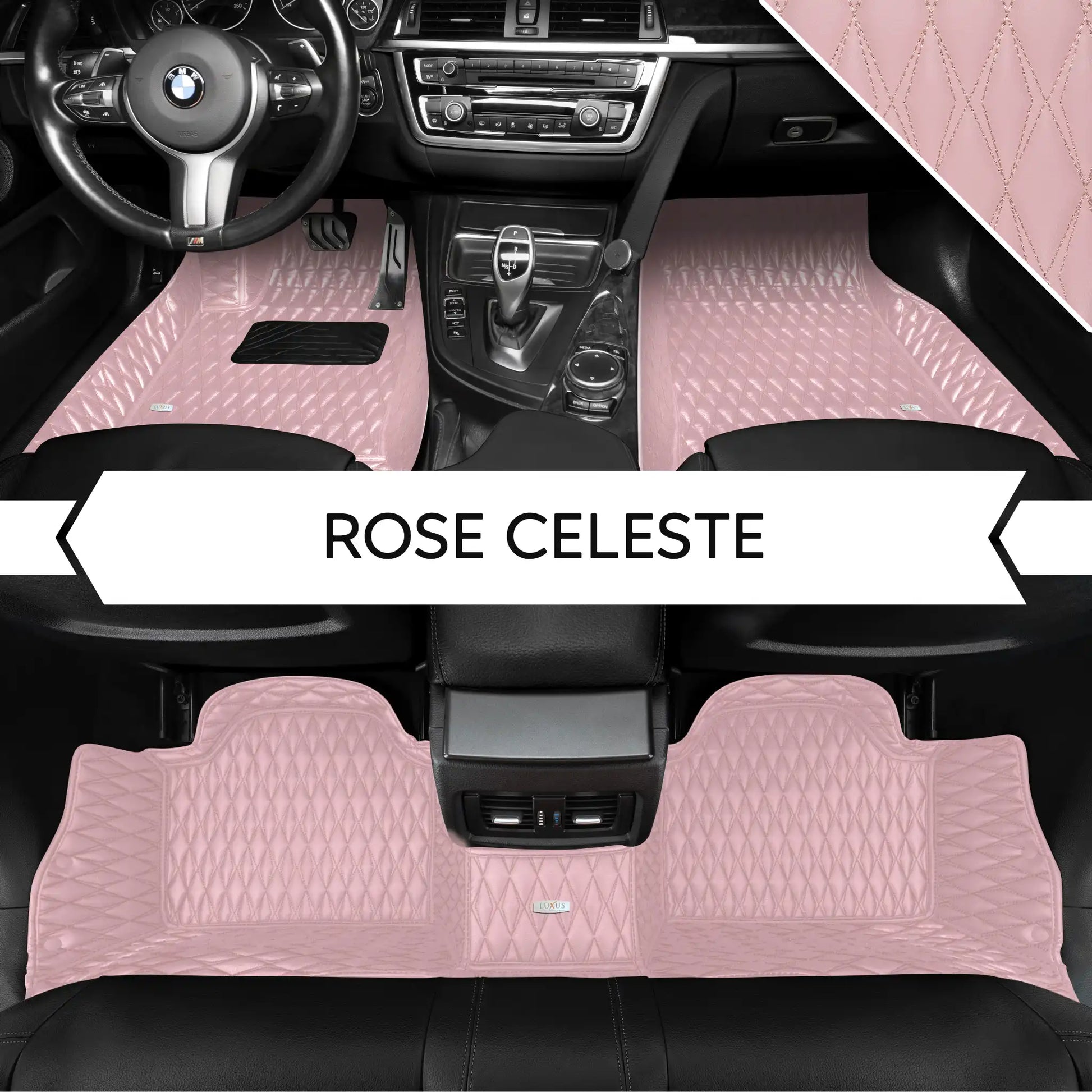 Tapis de Sol 3D sur Mesure Premium Luxus – Motif Double Losange Rose Céleste